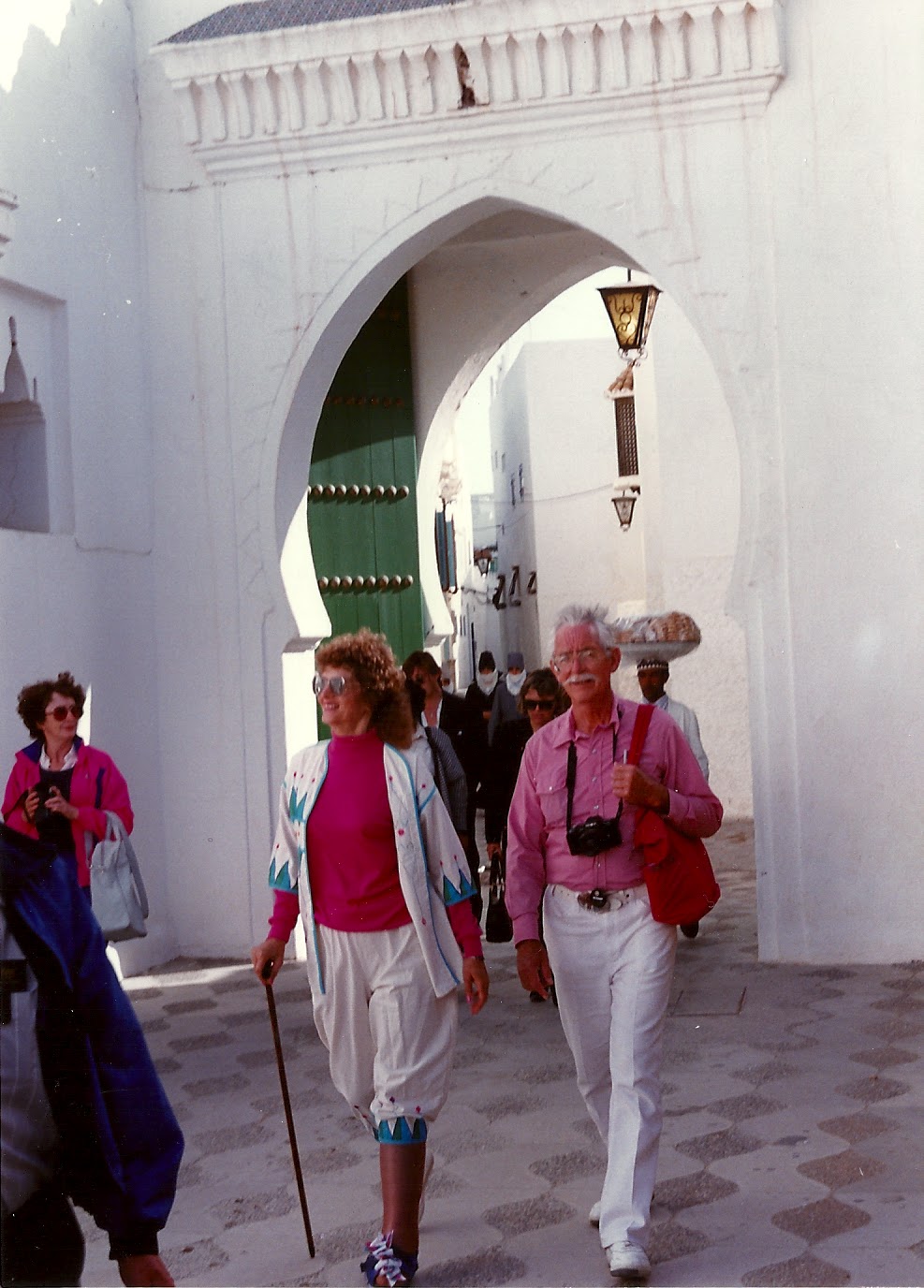 | My grandfather and Millie in Spain, 1992 (notice how she decorated the cast she is wearing- classic Millie) |