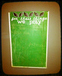For a few weeks I have had a thought rolling around in my head. I wanted a chalkboard in the living room for documenting our prayer needs. A place to remind our family that we are believing for great things from a great God.