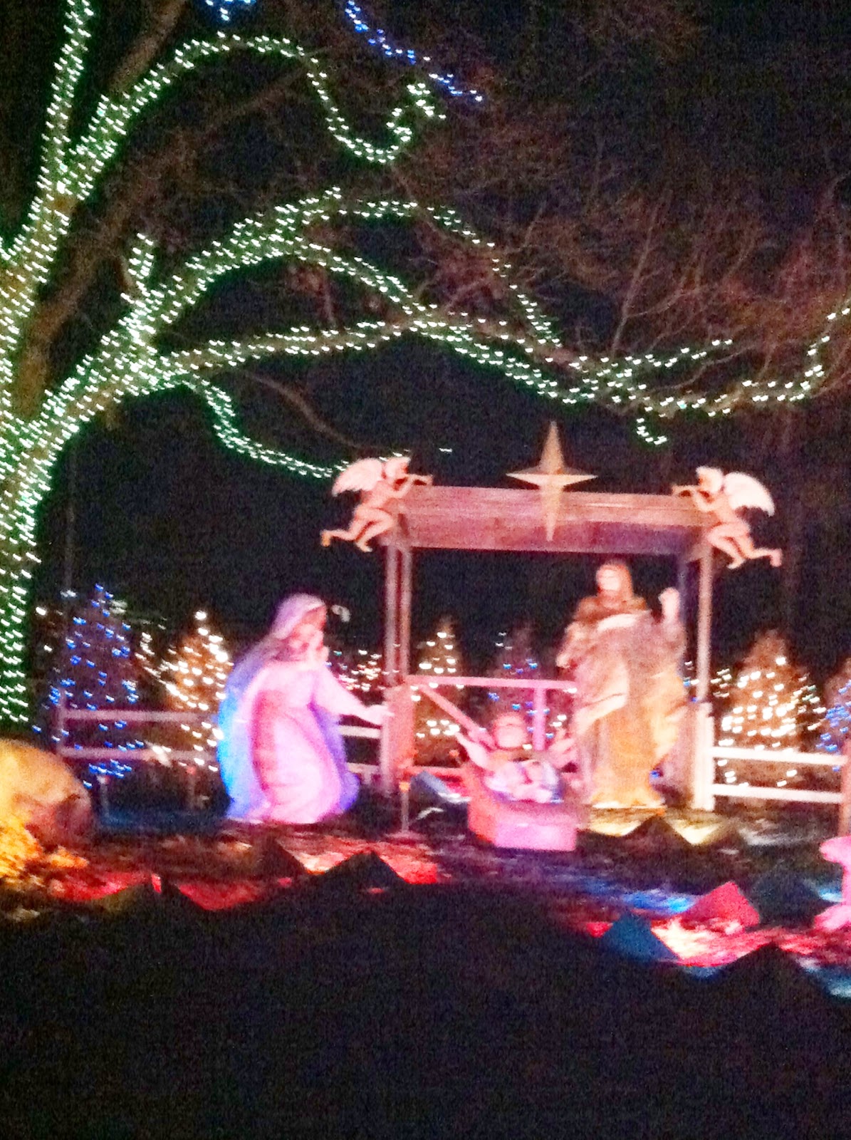We walked along the path, through tunnels of lights, past nativities, Charlie Brown, the Grinch, Disney characters, and tree after tree of lighted glory.